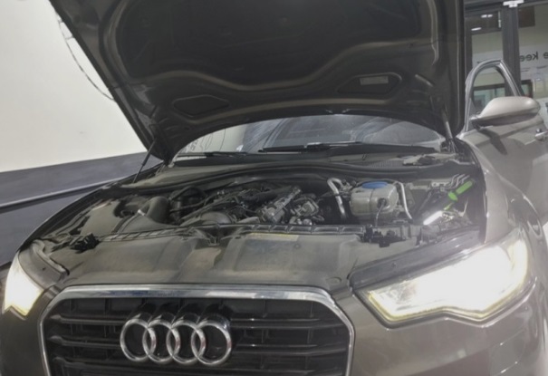 시동켜서 엔진소리 들어보기, 본닛 열어서 휀더 볼트 확인, 엔진오일 확인 등