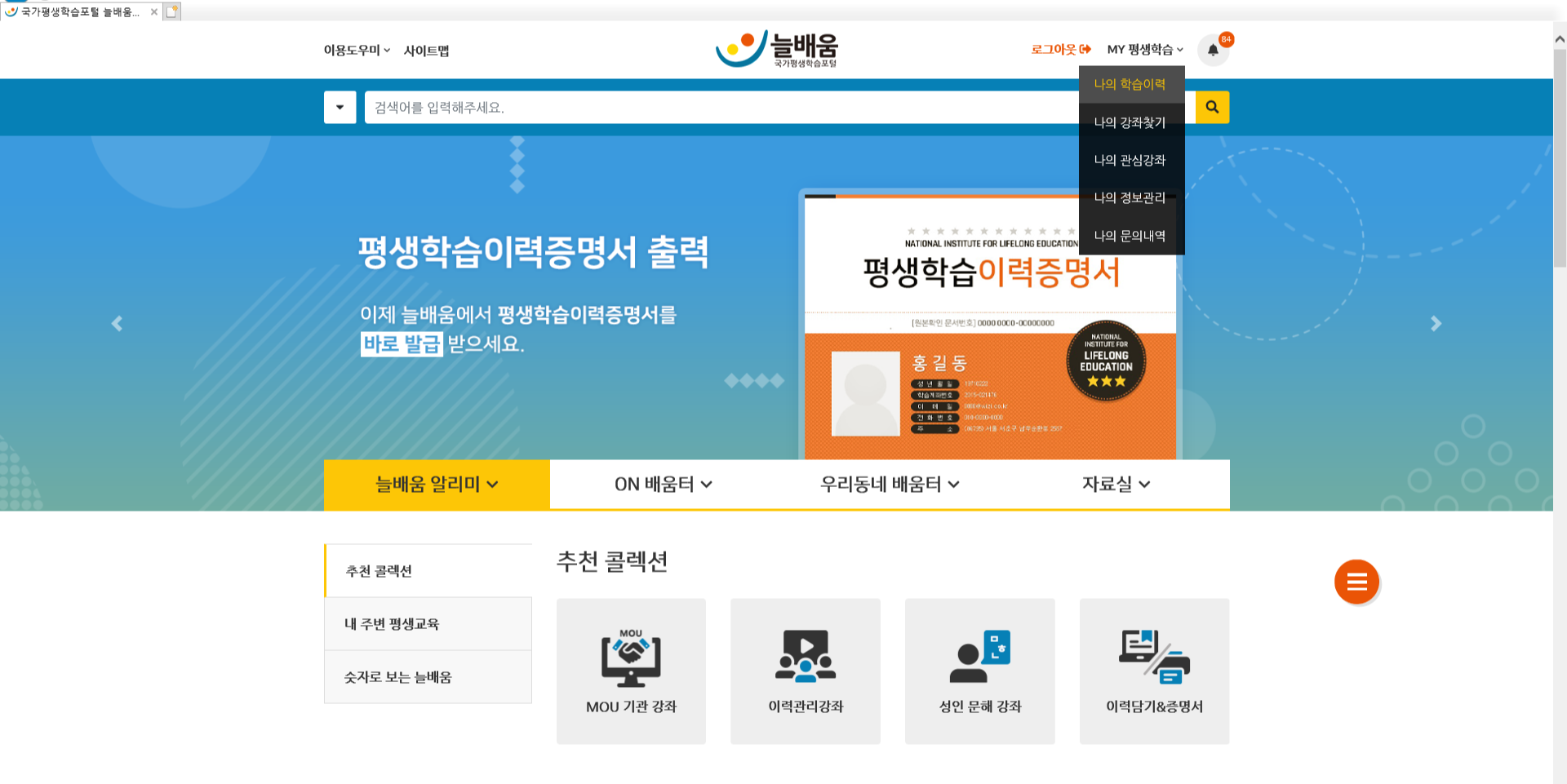 http://www.lifelongedu.go.kr/main.do