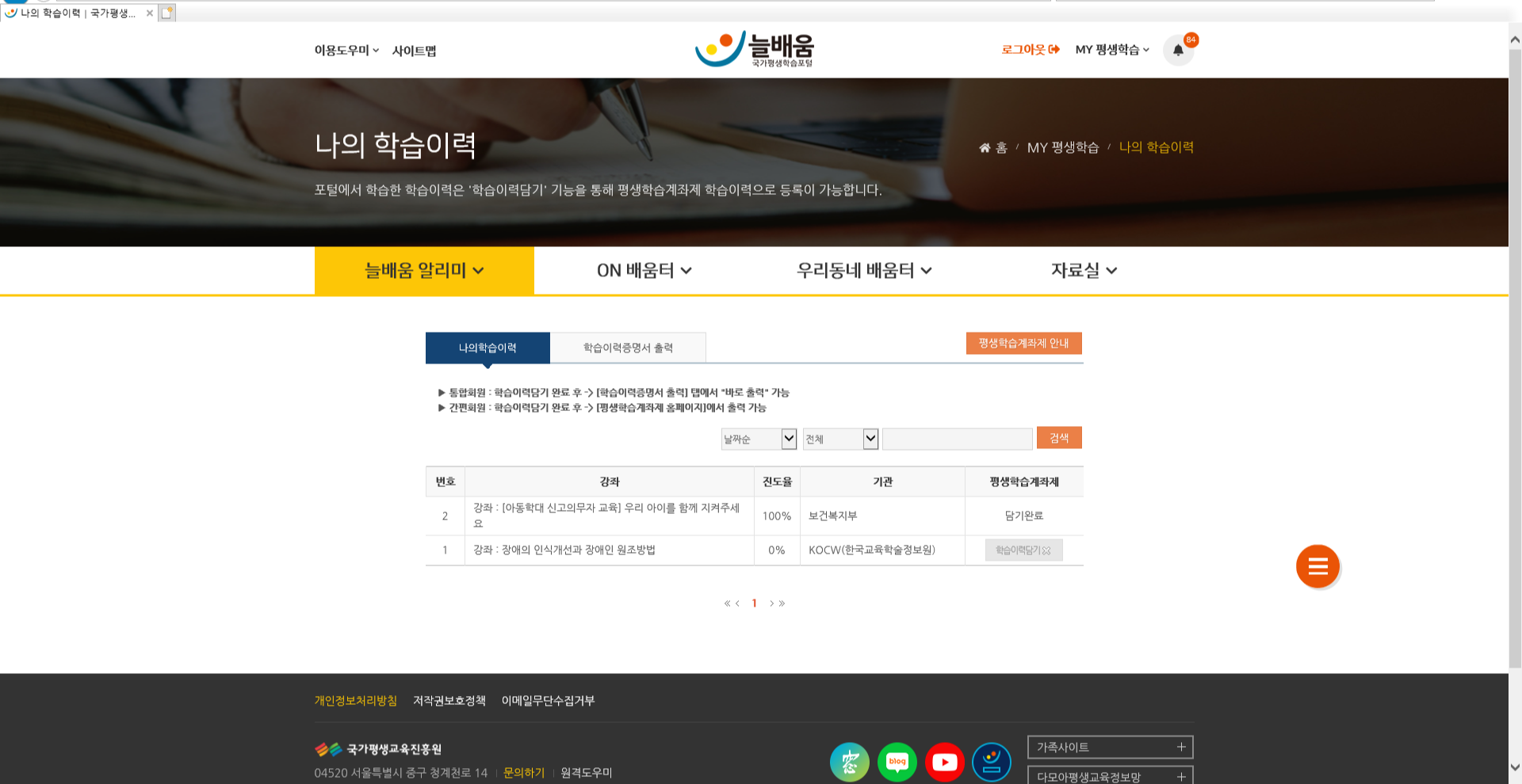 동영상 들으시고 나의 학습이력으로 보시면