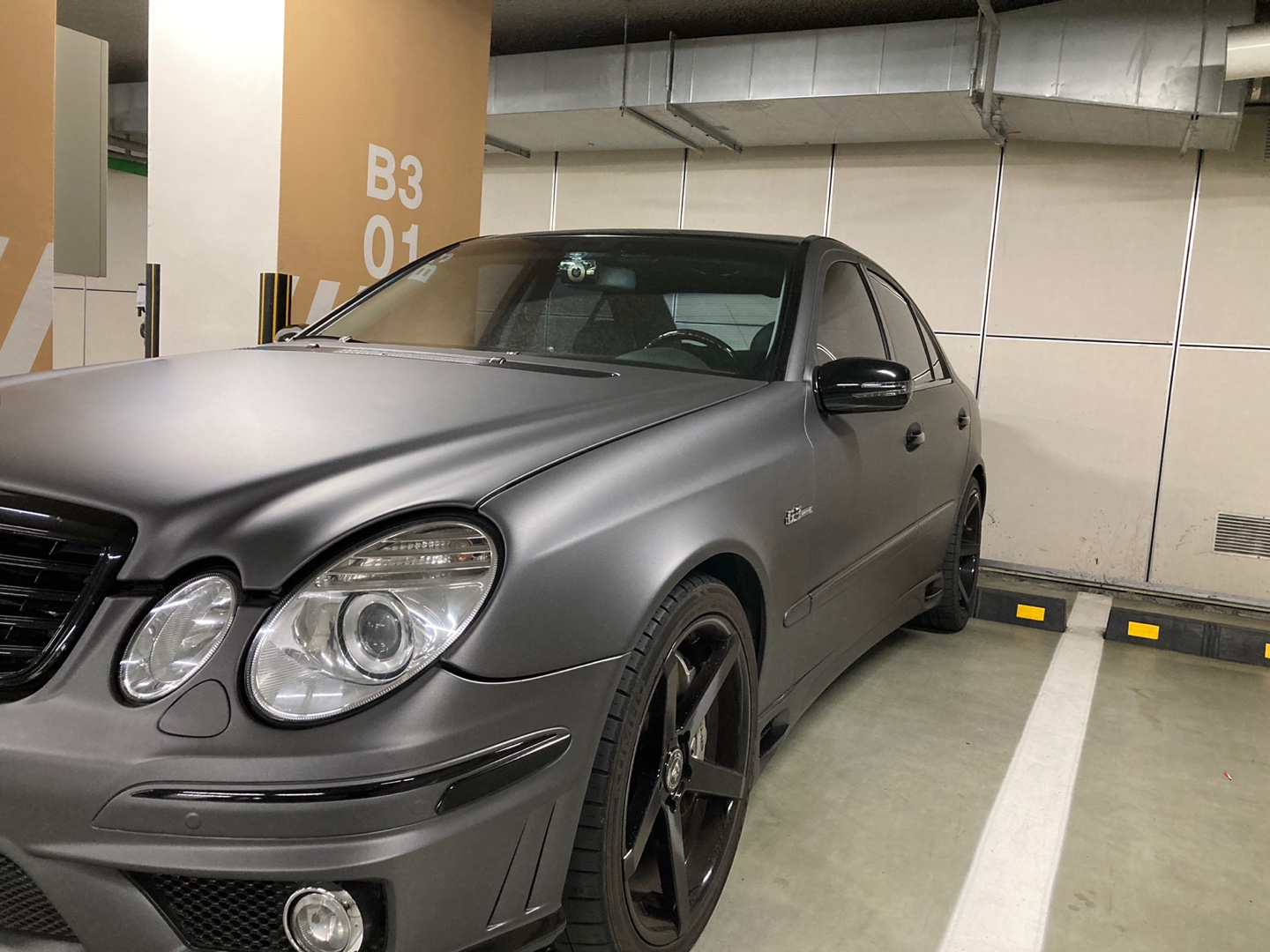 제 차량 벤츠 E55 AMG가 송진 가루 미세먼지로 인해 너무 지저분해서 아침에 랩핑 전용 코팅제로