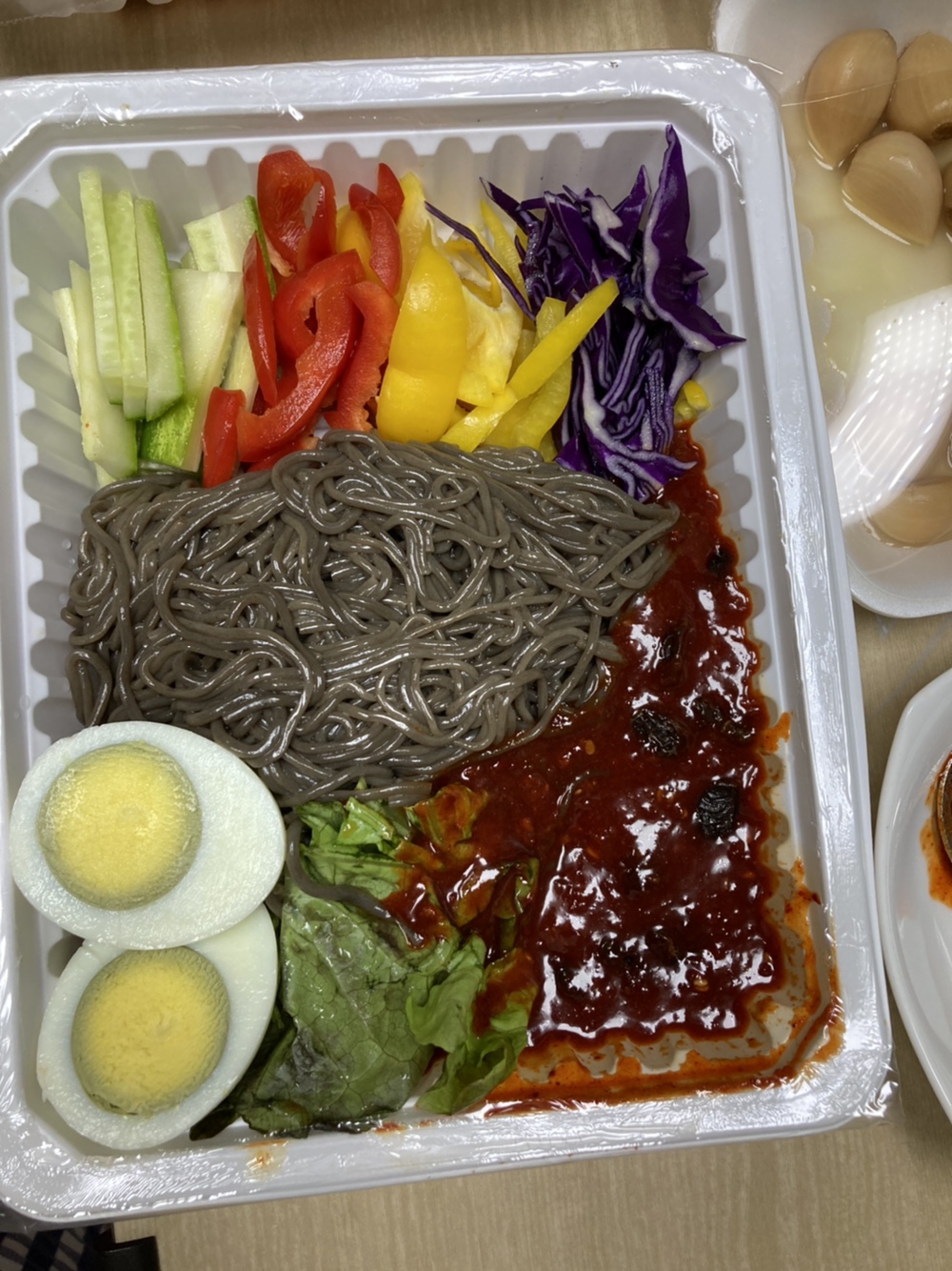 소스는 양이 많아서 조금 덜었어요 막국수 소스에 건포도가 들어가 있어요 ㅎㅎ